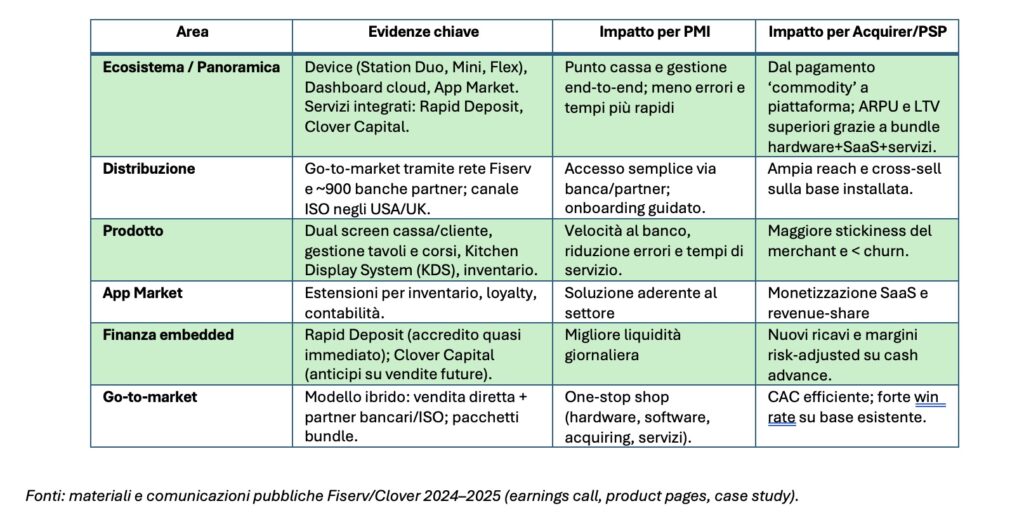 Sources: public Fiserv/Clover 2024–2025 materials (earnings calls, product pages, case studies).